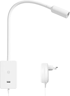 SEBSON Lampe de Lecture Murale LED Dimmable, Veilleuse Prise avec Port USB-C - Col de Cygne Flexible, Blanc Neutre 4.000K, 4,5W, 420lm - Lampe de Nuit Prise